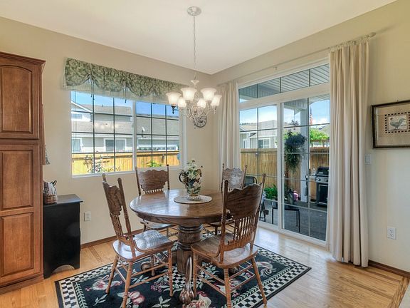 Perfect sized one level home tucked away in a quiet well kept neighborhood. This meticulously maintained home features AC, granite kitchen, hard woods, 9 foot ceilings, can lights, gas fireplace, private fenced front and rear patio/yard, huge 2 car garage with plenty of storage, 20' ceilings in master, Master bed with 5 piece bath and giant walk in closet. New lawn with sprinkler system and yard is maintained for you. Very close to Orting trail and downtown. Big windows=Tons of natural light.