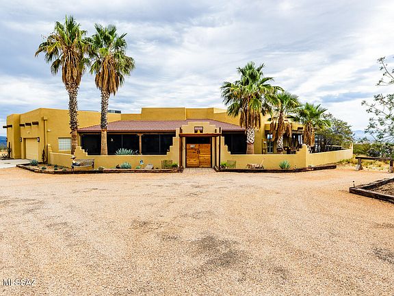 Experience the best of AZ living in this stunning 3bed 2bath, 2485sqft home perfectly positioned on 46.02ac in a prime Benson location. Designed to take in the sweeping panoramic views of the San Pedro Valley, this property blends comfort, function and natural beauty. Step inside to an open concept floor plan centered around an oversized kitchen island, perfect for entertaining. The recently remodeled kitchen and bathrooms showcase modern finishes and thoughtful design. Outside, enjoy fully landscaped front and back yards featuring multiple outdoor living spaces that create a true desert oasis. Other features include RV height garage with car lift, solar, chip-sealed drive, spa, and studio with bar. Relaxing or enjoying sunsets, this home offers privacy, space and unmatched Arizona charm!