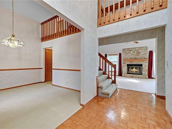 Walk inside and feel the warmth of this home’s natural palette, soaring ceilings, and cozy vibes. The main level is perfect for easy living, featuring a striking floor-to-ceiling stacked stone fireplace, plenty of natural light from skylights, and an open layout that flows effortlessly. The formal dining room is versatile enough to double as a home office or flex space. The main-level primary suite is a standout, with a double vanity, dual closets, and a bright skylight in the bathroom. Plus, the laundry is conveniently on the same level, making daily life a breeze.