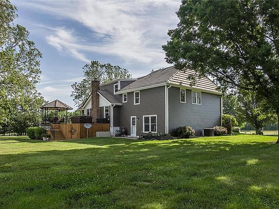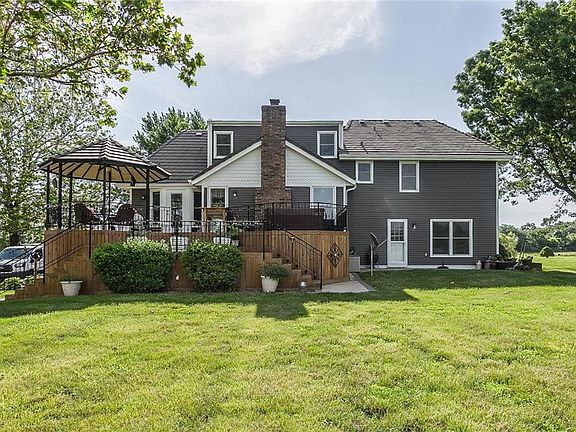 Breathtaking in Lee's Summit! Come see this beautiful property and take it all in! Side to Side split with 3 bedrooms, 2.5 baths and huge loft!!! It is set back on 10 acres & offers amazing views!! Multiple living spaces with plenty of room for everyone! Open kitchen with custom cabinets, granite counters and stainless appliances!! There is a metal barn with stables, plumbing & electrical in place, and stocked pond! Enjoy the huge deck all times of the day, from morning coffee to evening cocktails! CedarMAX is impact resistant/insulated siding w/lifetime warranty, new LR door, front storm door, and basement patio doors. Fresh paint and newer carpet! Seller has installed LED lighting in the barn. PLEASE STAY AWAY FROM BEEHIVES ON PROPERTY, THEY ARE LOCATED IN THE WHITE BOXES IN BACK YARD.