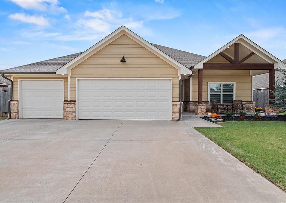 Meticulously maintained home in the desirable Mustang School District. This flexible 4-bedroom layout can also accommodate a home office. The split floor plan highlights a spacious living area with large windows, abundant natural light, and an open-concept design. From the 3-car garage with epoxy floors, you’ll pass through the utility room, featuring a mud bench, before reaching the oversized master suite with a generous bath and closet. Outside, enjoy the oversized backyard and relax under the covered patio. Enjoy the family friendly neighborhood with a community playground and splash pad.