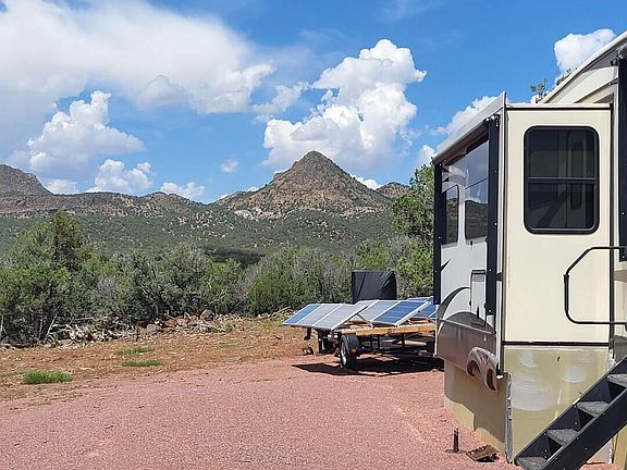 GREAT VIEWS! 40.36 acres on the Westwood Ranch. Highly treed with junipers and pinion trees. Beautiful view of Mt Floyd and Round Mtn. Abuts State Land to the south and to the west with a watering hole. Cooler summers and mild winters. Includes 38ft camper, solar panels, generator, storage shed, and water storage tanks. No HOA and with mantained roads. Great for hunting in zone 10 for Elk, Deer, and Antelope.
