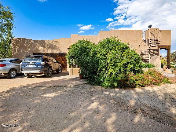Exceptional Horse Property on over 40 acres bordering National Forest with an exceptionally maintained 2-bedroom (+ office) home, with barn, haybarn, and aworkshop, awaits you in gated Rancho Diamante, just west of Prescott. Immerseyourself in nature with unbelievable privacy and views of Granite Mountain with incredible boulders, landscaping & lighting. The home features 2 bedrooms plus an office, 1.5 baths, oversized family room, with open kitchen & living room adjacent to a grand outdoor patio with built-in Viking BBQ & cooktop, plus pizza oven and outdoor sink. 2 Central AC/Heating units plus 2 evaporative coolers, and on-demand water heater provide the ultimate optionality in comfortable living. This remarkable property boasts a beautiful stucco house with incredible 1300 SF Barn Pro's wood barn with 4 rubber-matted stalls, wash stall, and tack room, large, enclosed hay barn, 4 large pipe-fenced horse corrals with Nelson Waterers and 60-foot Round Pen. A matching 1300 SF Barn Pro's clear-span workshop has a large garage door with concrete apron, 220v/110v and compressed air piping throughout inside and outside, plus covered parking for tractor, gator or ATV. Incredible outdoor living with horse facility observation deck, Granite Mountain view deck, second story view deck, all set on gentle rolling hills with massive boulder walls amongst the Juniper & Pinion trees. Miles of hiking and horseback riding trails throughout scenic Prescott National Forest (direct gate access) and the 3000-acre private ranch. Four mild but dramatic seasons provide comfortable living with variety and interest. Over 40 acres of nature including ~6 acres with ranch fencing. Optional cattle lease for low agricultural status property taxes.Owner is offering additional bulk pricing on Dodge Truck, John Deere Tractor withBackhoe & extensive attachments, John Deere Gator, Sooner aluminum 4-horse slant gooseneck trailer (with separate tack/dressing room), utility trailer, Can Am Commander ATV, and many shop tools. This exceptional home offers the perfect balance of tranquility, nature, and long views with direct access to riding and hiking trails surrounding the Rancho Diamante parcels plus the bordering Prescott National Forest expanding in all directions right at your doorstep.
