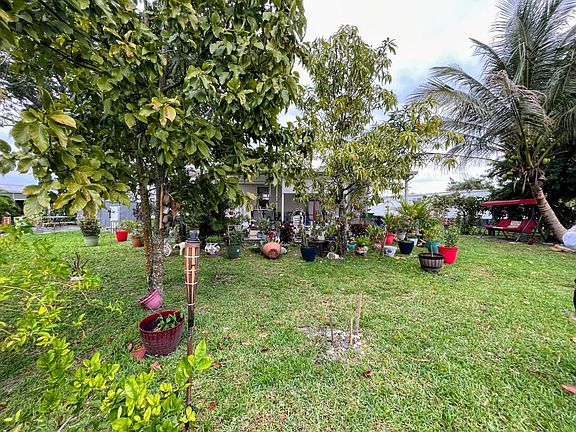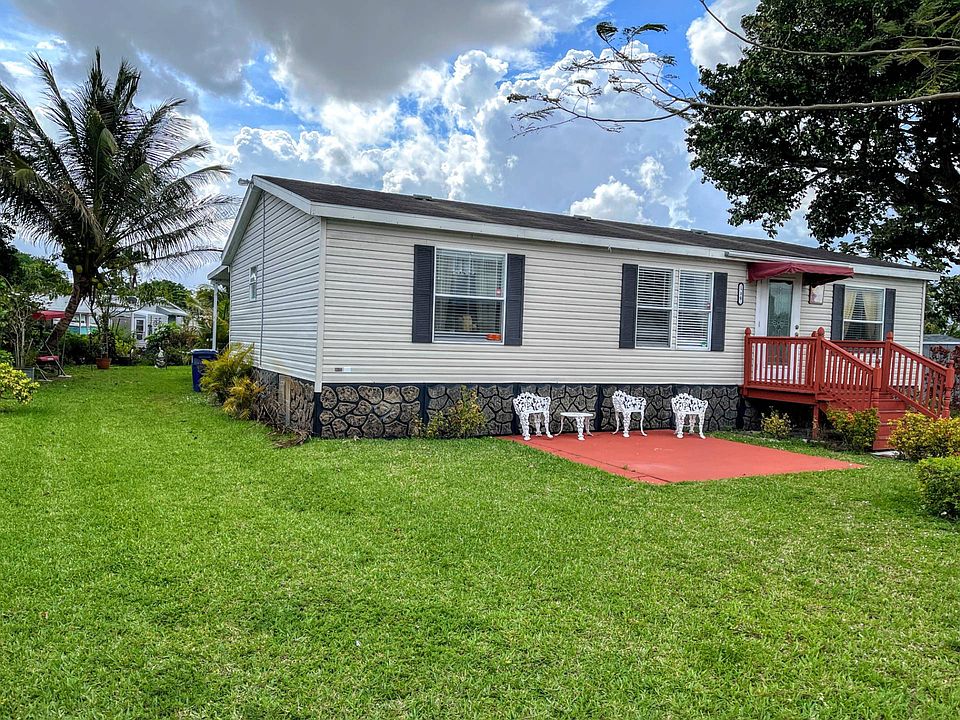 (En Español Abajo) LAND IS NOT INCLUDED Gardens walk is a tropical paradise in the comfort of your own home. What a fantastic price for the value of this 3 bedroom 2 bathroom home. It is located in the well sought after Haven Lakes Estates in the exclusive City of Miramar. The curb appeal of this corner lot is one of a kind with its oversized front yard. With an exquisite selection of mango, sour orange, Avocado, Plantain, Coconut and other tropical fruit trees, the oversized backyard creates a tropical oasis of relaxation and outdoors under the comfort and protection from the weather of it's over size covered patio. Inside, this well maintained home offers durable tile flooring throughout the living and dining room areas. The open floor concept is inviting with plenty of windows that bring an abundance of natural light. The dining and kitchen have a counter top for quick meals and the dining room space is large enough to accommodate a family of 4 to 6 while also providing additional built-in cabinet space. A split floor plan brings enhanced privacy to the bedrooms. Plenty of closet space in all bedrooms with additional built in storage spaces. Other features that add to this home's value and desirability is additional privacy from the absence of backyard neighbors, large central A/C unit, and oversize shed. Community information: Lot rent is $840 per month and it includes property taxes, garbage pick up, bulk pick up, security and common area maintenance. Park office approval is required prior to buying. This home qualifies for financing with buyer's qualifications. -------------------------------- Gardens Walk es un paraÃso tropical en la comodidad de su propia casa. Qué precio tan fantástico por el valor de esta casa de 3 habitaciones y 2 baños. Está ubicado en el bien buscado Haven Lakes Estates en la exclusiva ciudad de Miramar. El atractivo exterior de este lote de esquina es único en su tipo con su patio delantero de gran tamaño. Con una exquisita selección de árboles de mango, naranja agria, aguacate, plátano, coco y otras frutas tropicales, el patio trasero de gran tamaño crea un oasis tropical de relajación y al aire libre bajo la comodidad y la protección contra el clima de su patio cubierto de gran tamaño. En el interior, esta casa bien mantenida ofrece pisos cerámicos duraderos en todas las áreas de la sala y el comedor. El concepto de piso abierto es acogedor con muchas ventanas que brindan abundante luz natural. El comedor y la cocina tienen una encimera para comidas rápidas y el espacio del comedor es lo suficientemente grande como para acomodar a una familia de 4 a 6, al mismo tiempo que proporciona espacio de gabinetes adicional. Un plano de planta dividido brinda mayor privacidad a las habitaciones. Gran cantidad de espacio de guardarropas en todas las habitaciones con espacios de almacenamiento adicionales incorporados. Otras caracterÃsticas que se suman al valor y la conveniencia de esta casa es la privacidad adicional debido a la ausencia de vecinos en el patio trasero, una gran unidad central de aire acondicionado y un cobertizo de gran tamaño. Información de la comunidad: El alquiler del lote es de $840 por mes e incluye impuestos a la propiedad, recolección de basura, recolección a granel, seguridad y mantenimiento de áreas comunes. Se requiere la aprobación de la oficina del parque antes de comprar. Esta casa califica para financiamiento con las calificaciones del comprador.