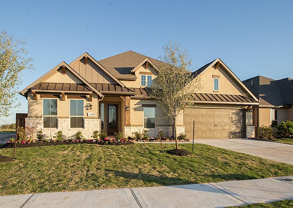 The enchanting two-story Arles design by Village Builders features an inviting front porch, a formal dining room, an open island kitchen with adjoining breakfast area, a spacious family room with corner fireplace, a master bedroom and master bath with dual vanities, corner tub, separate shower with seat, private toilet enclosure and a roomy walk-in master closet. The second floor features a game room, and powder bath. This plan also features a covered rear patio with optional outdoor grilling area. Plan options include an optional first floor study at bedroom two with optional bookcase and ceiling beams, and an optional second floor media room. *Elevations D, E and F are available for inventory only.