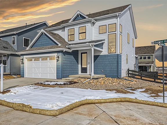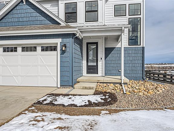 Beautiful two-story home located on a corner lot in the desirable Solstice Community by Shea Homes. Solstice is surrounded by Chatfield State Park on 3 sides of the community and acreage parcels on the 4th side. This two-story home has 3 bedrooms, 2.5 baths, loft, fireplace, covered patio, and 2 bay garage.  Design finishes include luxury plank Shaw Polaris Plus Marina wood-style flooring, tile floors at the bath and laundry rooms, MSI Frost White quartz kitchen counters with full backsplash, Dal Perpeturo Large Hex Elegant Beige half height tile fireplace surround, and Mastercraft Concord Maple Canyon Bluff cabinets. The Mirabelle Metropolitan Districts provide various services to the property and in addition to the estimated taxes, a $40 per month operations fee is imposed.