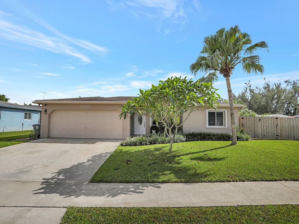Introducing a remarkable single family home with three bedrooms two bathrooms, and a 2 car garage situated on a fully fenced corner lot with room for a pool. This exceptional property boasts tile flooring in the living & dining room, wood flooring in the kitchen & family room, with laminate flooring in the bedrooms. This home also features accordion hurricane shutters, extra room in garage with A/C which can easily be removed, and a large covered patio. Water heater 2017 | A/C 2016 | Brand New Flat Roof | Main Roof 2004. It's prime location offers convenient access to excellent schools, shopping centers, restaurants, and parks. Low HOA! Don't miss out on this fantastic opportunity