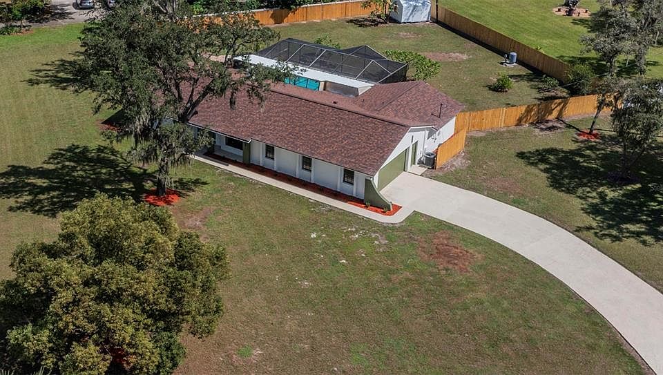 Rare opportunity to own a beautifully updated home in the sought-after Shadow Run community, where you’ll enjoy privacy, space, and freedom without HOA restrictions. This impressive 4-bedroom, 3 bath, 2-car garage residence spans over 2,200 square feet and features an inviting in-ground saltwater pool—perfect for both family living and entertaining. Step inside to discover a spacious split-floor plan with a large great room, dedicated dining area, cozy fireplace, and open access to the expansive screened lanai overlooking the pool. The extended kitchen, fully remodeled in 2025, showcases new granite countertops, dual deep sinks, a custom-built all-wood bar, and ample cabinet space illuminated by recessed LED lighting. Every bathroom has been completely remodeled with modern finishes and thoughtful design, creating a fresh and luxurious feel throughout. The home also features new luxury vinyl plank flooring (2025) and a new A/C system (2023), ensuring comfort and energy efficiency all year long. Outside, the property impresses with lush, manicured landscaping and a massive corner lot, offering plenty of space to play, garden, or store your recreational toys behind the fence. Major upgrades include a new well, pump, and filtration system, pool resurfacing , and a new roof (2020)—giving you peace of mind for years to come. Adding even more confidence for buyers, this home was recently appraised at $600,000, reflecting its outstanding condition and value. Shadow Run is a hidden gem community surrounded by nature and custom homes. Residents enjoy a private boat ramp with access to Lake Grady’s fishing and recreation, or can launch at the nearby Alafia River for direct access to Tampa Bay. Conveniently located just minutes from I-75, shopping, dining, and top-rated schools. This turnkey home combines comfort, style, and functionality—all in a prime location with no HOA restrictions. Come experience this beautiful property in person and see why Shadow Run continues to be one of the area’s most desirable neighborhoods.