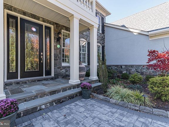 This immaculate residence is unequalled in design and has extraordinary upgrades, perfect for inside and outside living and entertaining. Welcome guests with a paver walk, accent border, professional landscaping, and a rectangular portico covering an eight-foot leaded glass entry door. Inside, arrival is celebrated with a grand two story foyer, two sweeping curved staircases, and two Juliette balconies embellished with iron balusters. This quintessential Hampton model, designed and built by Toll Brothers offers a formal living room, conservatory and formal dining room flanking the primary foyer, while an extended foyer punctuated with four columns unfolds to the formal study, and a two-story great room. Outstanding features and upgrades include a coffered ceiling, soaring stone fireplace, plantation shutters, ornamental wall trim accents and a secondary back stair. The hallmark chefs kitchen is at the heart of the home and has adjacencies from the great room, dining room, butlers service pantry, breakfast room, morning room and outdoor dining patio. Gourmet kitchen upgrades include 42? cabinetry, exaggerated ogee-edged granite counters, decorative backsplash, and professional Jenn-Air appliances. A commanding center entertainers island is host to a wrap-around bar bump-up, three pendant lights, and prep sink for the chef to cook, serve and entertain all at once! Upstairs, the gracious open landing is embellished with iron balusters overlooking the foyer and the great room. Hardwood floors are a striking unifying element, and travel throughout the entire upper level and stair cases. Four bedroom suites each have a private attached full bath, and two bedroom suites include Juliette balconies. Luxury living is fully expressed in the Owners suite beginning with French doors opening into a spacious den and sitting room, followed by paired columns that transition to the suite bedroom. Deep tray ceilings accent the bedroom area while a pair of French doors open to a sumptuous spa-like bath featuring separate vanities, soaking tub, decorative accent tile, and walk-in shower. Completing the Owners suite is a walk-in dressing closet, and a second, hallmark bonus closet boasting more than enough space for the most extensive wardrobe. Enjoy the comfort and beauty of outdoor living and entertaining at its finest with creative hardscaping integrating professionally designed landscaping and outdoor lighting. A dining patio courtyard and built-in fire pit offer access to the breakfast room, kitchen and morning room and are perfect for impromptu meals and gatherings. Extensive paver design unfolds to the soothing sounds of a gentle waterfall, rock garden, and cascading stone flower beds that mark entry to the circular stone terrace with lighted stair risers and an iconic stone feature fireplace. This design and focal point stand at the ready to offer perfected outdoor living and gathering on a grand scale. Additional upgrades and amenities outside include an epoxy finish, utility sink, plantation shutters and service door in the garage, generator, double door and wide walk-up stair from the lower level, a 24-zone irrigation system, dry stream rocks and swales and giant privacy evergreens. Come home to uncompromising quality, comfort and ?better than new? luxury amenities at every turn. Simply immaculate!