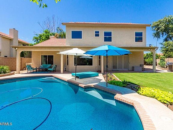 The backyard retreat features a sparkling Pebble Sheen pool, complemented by a covered patio and a lush lawn, ideal for recreational activities. This property is a true gem that awaits its fortunate owner