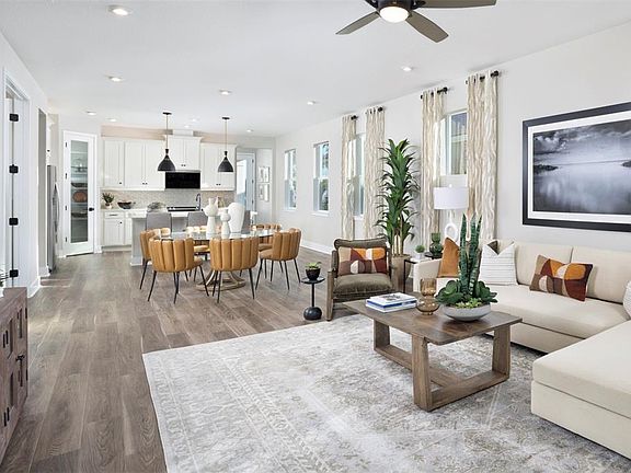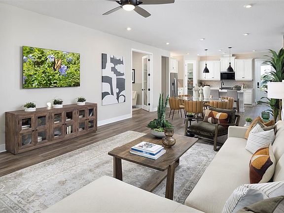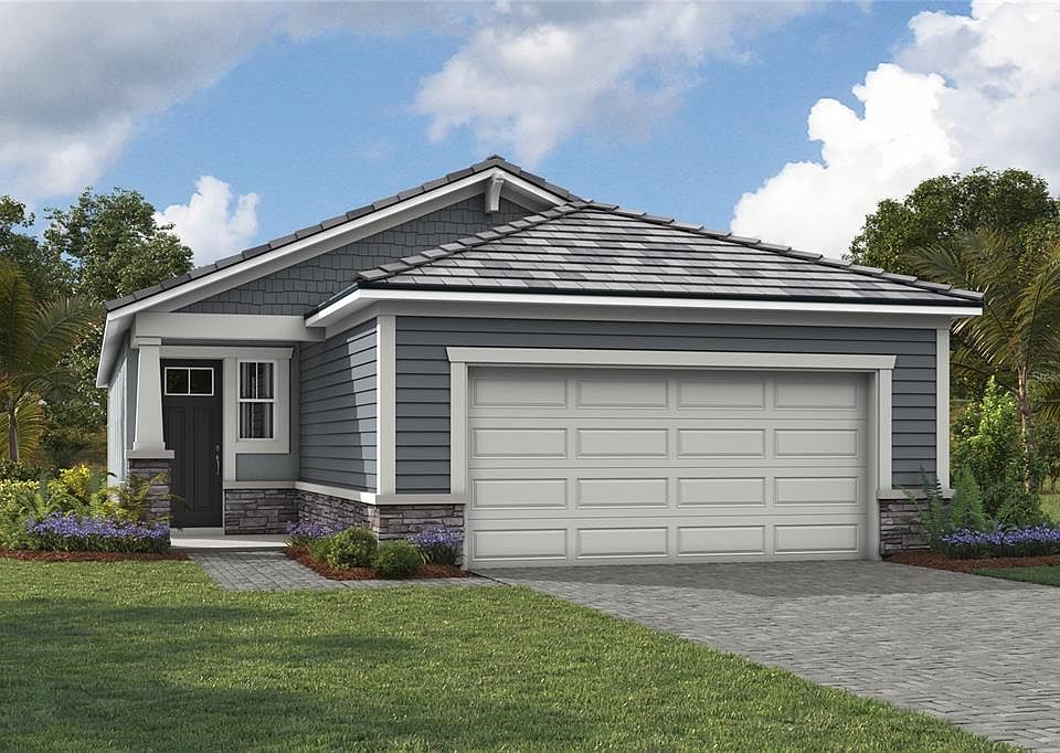 Under Construction. Welcome to the Lapis model in Brightmore at Wellen Park, a premier 55+ active adult community where every detail is designed for comfort, convenience, and connection. This single-story home offers 2 bedrooms, 2 baths, and a private study, plus a 2-car garage, all thoughtfully arranged across 1,687 sq. ft. Natural light spills into the open-concept living spaces, creating an airy, inviting atmosphere perfect for entertaining or relaxing. The chef-inspired kitchen shines with soft, creamy cabinetry accented by elegant crown molding, quartz countertops with delicate gray veining reminiscent of natural marble, and a glossy neutral backsplash in a clean stacked pattern. A spacious island anchors the space, complemented by Whirlpool stainless steel appliances, including a slide-in range, microwave, dishwasher, and ENERGY STAR® side-by-side refrigerator. Throughout the main living areas, wide-plank luxury vinyl flooring in a warm, natural wood tone adds modern sophistication, while plush carpet brings comfort to bedrooms. The owner’s suite feels like a private retreat with dual sinks, quartz counters, and a walk-in shower tiled to the ceiling in a soft stone-gray hue, framed by a brushed nickel enclosure. Bath 2 features an upgraded recessed shower for added convenience. Step outside to a screened lanai with paver flooring, ideal for morning coffee or evening gatherings. Additional highlights include impact windows, 8' interior doors, a pre-plumbed utility tub in the garage, and a two-car garage with a durable epoxy-style finish. The Craftsman elevation adds timeless curb appeal with stone accents and a welcoming front porch. Why Brightmore? This is more than a home—it’s a lifestyle. Brightmore offers 11 acres of resort-style amenities opening soon, including a lakefront clubhouse, resort and lap pools, pickleball courts, fitness center, group classes, café and bar, and a paw park. Enjoy a full social calendar, events, and activities designed exclusively for 55+ residents. Located just 2.5 miles from Downtown Wellen and minutes from CoolToday Park, world-class beaches, golf courses, and nature preserves, Brightmore puts you at the heart of everything you love. Photos, renderings and plans are for illustrative purposes only and should never be relied upon and may vary from the actual home. Pricing, dimensions and features can change at any time without notice or obligation. The photos are from a furnished model home and not the home offered for sale.