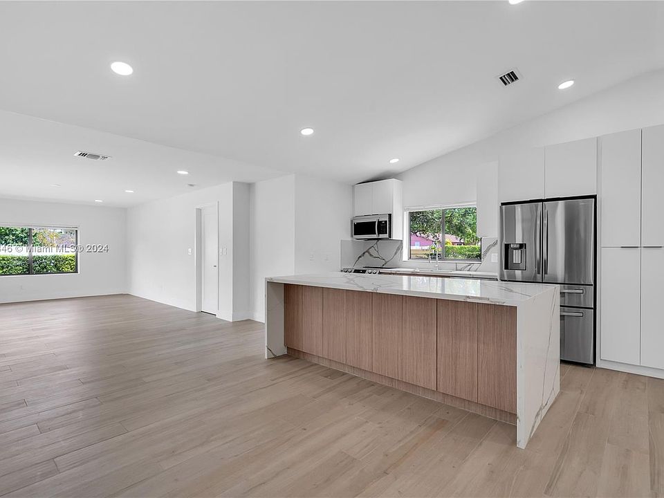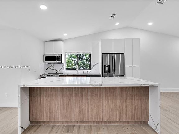 Tastefully updated home on a corner quarter acre lot with a modern theme ready to move in. This bright sunlit home features 4 beds, 2 baths with an open living/dining area, a renovated kitchen with quartz countertops, and Samsung SS appliances. Brand new light fixtures, updated bathrooms, Italian porcelain flooring, custom closets, a new AC, and a fresh coat of interior and exterior paint. Spacious backyard with space for a pool and a side entry large enough for a boat or RV. Close to Fl. Turnpike, US1, parks, schools, shopping and more.