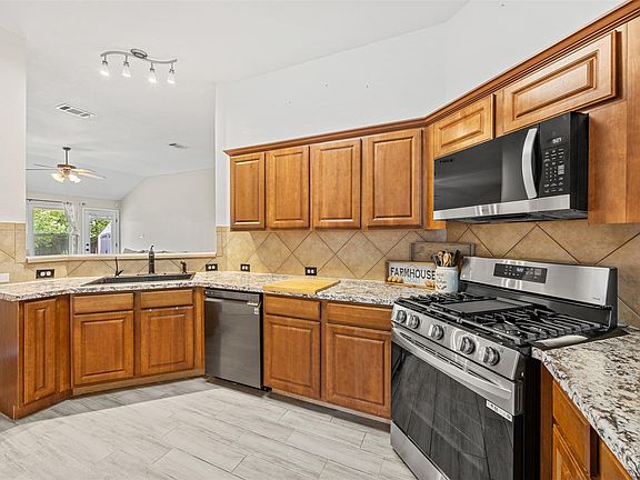 Welcome to a truly exceptional opportunity in the desirable Pioneer Crossing East neighborhood. This charming single-level home offers a comfortable lifestyle and an incredible value proposition for a new owner. The key highlight is the assumable VA loan at an outstanding 2.75% interest rate, a feature that is nearly impossible to find in today's market and offers substantial long-term savings. Built in 2005, this 1,675 square-foot residence features a bright, open floor plan with high ceilings. The home includes three bedrooms and two full bathrooms. The kitchen is equipped with new stainless steel appliances, including a gas range, and is perfect for daily use and entertaining. A leased water softener and a security system also convey with the home. The roof was replaced in 2023, and the appliances in 2024. Step outside to a covered back patio and a private, fenced-in backyard, ideal for relaxation and outdoor activities. The yard also features an automatic sprinkler system for easy maintenance. Located on a quiet cul-de-sac, this property also benefits from a two-car attached garage. The Pioneer Crossing community offers a variety of amenities, including a pool, playground, and walking trails, all of which are just a short walk away. This home is also located within the Manor Independent School District, close to Pioneer Crossing Elementary School. This is a wonderful opportunity to own a home in a fantastic location. Schedule a showing and discover the potential of this home.