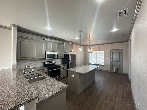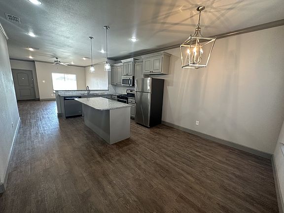 Come tour this beautifully laid out property. The home has 3 bedrooms, 2 bathrooms and a 2 car garage. The home features many upgrades throughout including granite countertops, stainless steel appliances, upgraded tile shower surrounds, with large backyard patio! The home also includes the refrigerator! Pictures are from unit with different finishes. This property has Vinyl plank throughout. Roommates considered with full months rent deposit. Pet-friendly with limitations: Up to 2 dogs allowed ($300 deposit per pet) 40 lbs and under. No aggressive breeds and no cats allowed. Schools: Cooper North Elementary, Laura Bush Middle School, Lubbock Cooper High