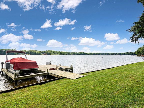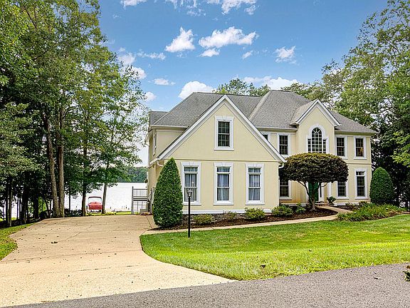 Welcome to paradise on Fawn Lake! This attractive five-bedroom, four-and-a-half-bath home spans over 4780 square feet of living space, with more than 150 feet of lakefront living! This lovely waterfront estate features wall-to-wall new Pella windows offering lake views from multiple vantage points. The grand two-story foyer invites you into this light-filled masterpiece. Custom built by Sagun, the quality construction is evident upon first glance with custom woodwork, architectural nuances, and hardwood floors. When you enter, you are met with an abundance of light; on the right, you will find a library/office with walls and walls of built-in bookcases, to the left, a formal dining room, with a chair railing and crown molding. Walking further down the foyer, you are welcomed to an expansive family with a soaring stone front, a wood-burning fireplace, and the right, a sunroom with a wall of windows with expanding views of the lake. Just imagine yourself curled up on the sofa reading a book as the sun streams and the light bounces off the lake. The open and attractive kitchen opens to the family room that opens to a deck that extends over half of the home, a perfect location to grab a glass of wine, relax and watch the sunset, or entertain all your new friends once they've learned you've just bought a house on the lake! Off the kitchen, you will find a Butler's Pantry that opens perfectly to a just painted three-car garage with an abundant amount of storage shelves. The upstairs also offers sweeping views of the lake. The open hallway leads to an attractive primary bedroom overlooking the lake and the recently renovated spa-inspired bathroom with a soaking tub and a huge walk-in closet! There are three sizeable bedrooms, two bathrooms on this level, and a laundry room. Okay, as if the other two levels weren't enough, the lower level will totally wow you! This level offers a fantastic family room with a gas fireplace, built-in bookcases, custom-built bar, game room, office, a bedroom, a bathroom, and ample storage rooms. A perfect spot for entertaining! This home sits on the main body of the lake! This fantastic home is ideally situated to watch the July 4th fireworks display from either your deck, patio, expansive yard, or your very own private dock (and the dock also has a boat lift!). Park your boat on your private dock, a short walk from the patio. Once you're out on the water, you can experience what the lake lifestyle is all about. Fawn Lake, spanning over 7 miles of shoreline, you'll enjoy family-friendly camaraderie with your fellow neighbors' boating, paddleboarding, kayaking, or swimming. More social opportunities are available at the Fawn Lake Community Association Clubhouse, which hosts fun-filled community events for the whole family. Fawn Lake also offers a country club, tennis courts, basketball courts, volleyball courts, pickleball, soccer field, baseball field, a marina, a splash pool, dog park, and 24-hour security. If you enjoy golfing, the Arnold Palmer-designed golf course is where you will want to spend your weekends!
