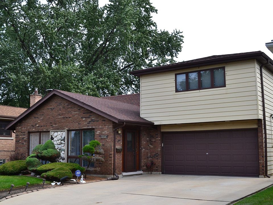 Come home to this beautiful brick tri-level sitting on a double lot in the much sought after area of Mount Greenwood. You are welcomed into the inviting living room with its wood cathedral ceiling and exposed beams. The large expanse of windows flood the living room with sunlight in summer and the beautiful stone fireplace and radiant heated floor warm in the winter. Step up to the open concept kitchen and large dining room. Escape up a separate staircase to the huge master suite along with master bath and double closets. The private balcony overlooks the lovely, fully fenced yard with a garden fountain and electric ready to add your outdoor spa. The lower level family room includes full bath and office area. The garage is heated and drain tiles have been installed with a lifetime warranty.