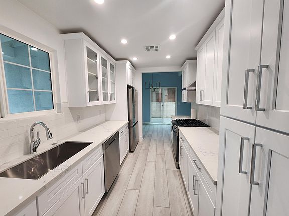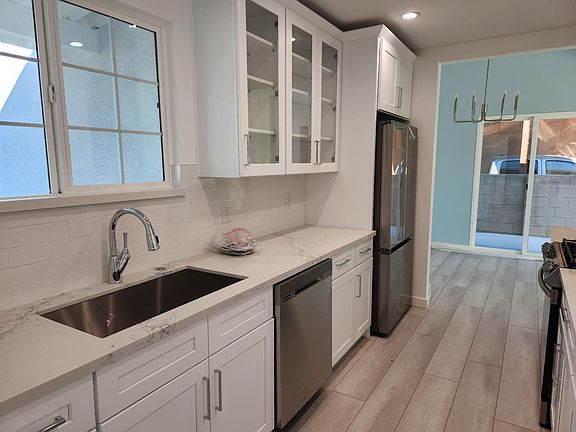 Beautiful newly renovated modern house on quiet street in Sun Valley, 2 bedroom and studio (third bedroom) 2 bath, 1047 sq ft house. Open modern floor plan ideal for comfort and convience. Kitchen has plenty of new cabinets for storage, with all new kitchen appliances including: oven, dishwasher and refrigerator. The nice sized living room features a large sliding door that leads to a huge backyard patio and newly cemeted area. The 2 car garage can be used for parking 2 cars while the driveway accommodates 3 car parking. Full size washer and gas dryer in garage. The front studio includes large new windows, kitchenette, mini fridge, and shower. The front studio can also be sub-leased if desired. Must see! Available as soon as March 1st One year lease contract, $3500.00 month lease, security deposit of $3500.00 required, utilities are not included, small dogs are ok ($50 addition fee for each), no smoking inside house, parking in driveway for 3 cars