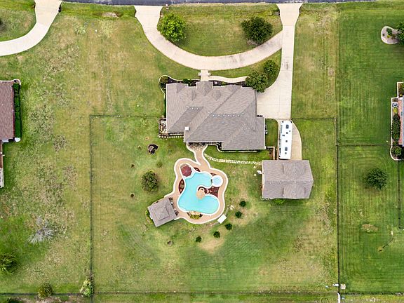 Gorgeous 1.5-Story Home on Over an Acre in Highly Sought After Gated community in Van Zandt Farms. This beautifully maintained home offers 4 bedrooms, 3.5 baths, 2 dining areas, and versatile living spaces—including a spacious upstairs bonus room ideal for a game room, media room, or additional bedroom. The open-concept design is filled with natural light and features wood and tile floors, plantation shutters, and views of the stunning backyard oasis. The chef’s kitchen features granite countertops, custom cabinetry, an island, walk-in pantry, and spacious breakfast nook. The private primary suite is split from the secondary bedrooms and features a spa-like bath with dual vanities, jetted tub, and a massive walk-in closet. Step outside to your personal retreat—complete with a resort-style pool and hot tub with waterfall, beach-like entry, extended decking, covered patio, and a large cabana perfect for entertaining. Sitting on a fully fenced, irrigated 1+ acre lot with no city taxes, this property offers a circular driveway, RV and boat parking, a 2-car attached garage, and a detached 2-car garage with workshop PLUS a 550 SF bonus space above (not included in the 3,096 SF) and a Pool Bath! Major updates include: 2022 HVAC system, furnace, and ductwork, plus 2019 roof and gutters, 2020 all new windows, and fresh interior paint. Located in top-rated Northwest ISD, this home is close to schools and community amenities—pool, playground, pond, and walking trails. This outstanding home for sale combines luxury, comfort, space and everyday convenience while delivering exceptional value in a premier neighborhood—experience the best of Texas living!