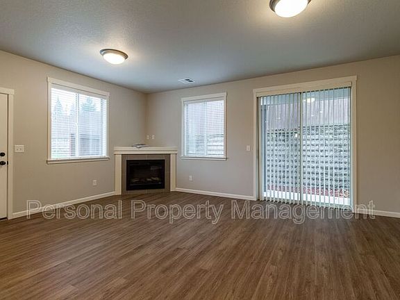 This stunning 1,513 sq. ft. townhome features a spacious open-concept great room floor plan, perfect for entertaining. The kitchen is designed with slab quartz countertops, a matching island, and stainless steel appliances, while large windows throughout fill the home with natural light. The main level showcases luxury plank flooring, with cozy carpet upstairs for comfort. A bonus loft area provides additional living space, and the home includes three bedrooms and two and a half bathrooms. Additional features include a one-car garage, washer and dryer hookups, and a sleek designer look throughout. Conveniently located near I-5, this home is a great option for commuters.