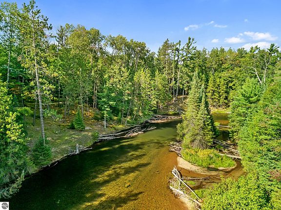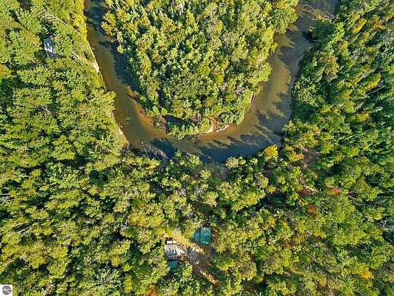 This extraordinary 20-acre estate encompasses the legendary Devil’s Elbow of the Au Sable River, one of Northern Michigan’s most storied and scenic bends. With more than 1,500 feet of frontage wrapping both sides of the river, the property delivers unparalleled privacy, protected panoramic views, and a palpable energy from the river’s dramatic bend and swift current. From the elevated homesite, the views are exceptional—sweeping both up and downstream and centered on a private island that is part of the property. On the far bank, an additional acre of deeded land lies surrounded by 30,000 acres of protected State Forest, ensuring unmatched seclusion and adventure. The existing home has been taken to the studs, offering a rare opportunity to restore or create a new architectural statement. Electric, well, and septic are on site (condition unknown). Multiple build sites and potential splits provide endless possibilities for a family compound, retreat, or legacy holding. World-class fly fishing, abundant wildlife, and year-round outdoor recreation, this is a once-in-a-lifetime offering worthy of the finest portfolios.