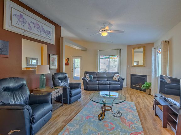 Welcome to this single level well maintained home. A wonderful Great Room with a gaslog fireplace,easy care ceramic tile that looks like wood and a fan/light! Great kitchen with a gas stove, refrigerator & dishwasher. Nice size breakfast nook or a formal dining room(your choice)! Separated Master Bedroom has a walk in closet.The Master Bath has a tub/shower combination. The Second bedroom could be used as an office or bedroom. The 3rd Bedroom is good size with a window seat. There is a full bathroom next to the 2nd & 3rd bedrooms. Nice size finished garage. The backyard has an open patio with block wall and area for rock or grass. Refrigerated Air a plus! Close to Kirtland AFB,shopping,I-40,Community Center, tennis courts, baseball field. Wonderful area!!