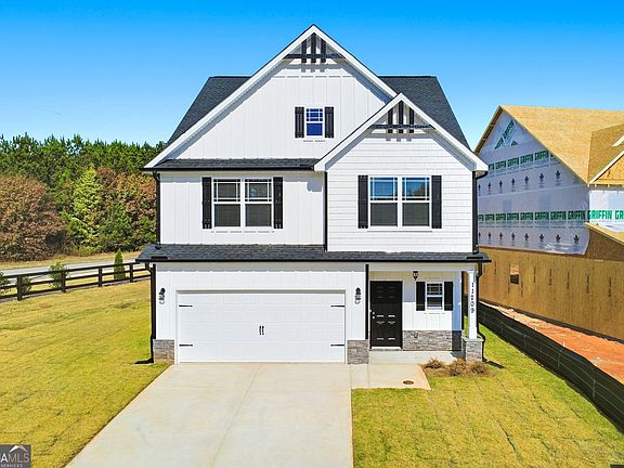 Welcome to the Cornerstone Neighborhood, where timeless craftsmanship meets modern luxury. Black Label Development is proud to present a stunning new 5-bedroom, 2.5-bath Craftsman-style home designed for today's living. The main level of this spacious floor plan is an entertainer's delight, featuring a seamlessly connected, open-concept family room, kitchen, and dining area. The gourmet kitchen, complete with elegant granite countertops and a full suite of stainless steel appliances. For added convenience, the main floor also includes a versatile bedroom or office space and a half bath. Step inside from the garage to a well-appointed mudroom area with a built-in bench and storage cubbies. Upstairs, you'll discover four generously sized bedrooms, providing ample space for family and guests. The oversized owner's suite is a true sanctuary, a massive walk-in closet and a spa-like en-suite bath. Indulge in relaxation with the separate soaking tub and shower, all complemented by a dual vanity. Location is everything, and this home offers a prime position for commuters and city-lovers alike. Enjoy the convenience of easy access to I-75, the major artery connecting Lovejoy to the heart of Atlanta. Call today for a tour and builder incentives!