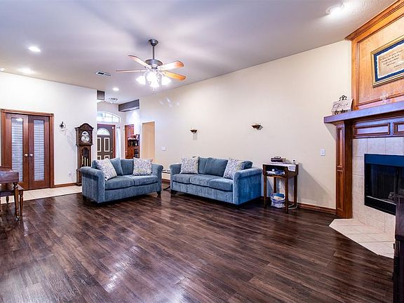 Step into the perfect blend of comfort and convenience with this updated 3 bed, 2 bath brick home complete with a study that could easily serve as a 4th bedroom. Located in the award-winning Choctaw school district, this home is ready to welcome you with its new flooring and fresh paint. The home features an open kitchen, dining, and living area perfect for gatherings and entertaining. A corner fireplace adds warmth and ambiance with the flip of a switch. Maple cabinets and a pantry offer ample storage, while a breakfast bar provides additional seating. The master bedroom accommodates a king-size bed and includes a spacious sitting area and large bay window overlooking the landscaped backyard. Enjoy luxury with a double vanity, jetted tub, separate shower, water closet, and an expansive walk-in closet with built-in organizers. Generously sized secondary bedrooms share a guest bath opposite the master and the convenient inside laundry room adjacent to the garage features plenty of storage, folding counter, hanging bar, and mudroom sink. Relax on the covered front porch or the oversized covered back patio which overlooks the beautifully landscaped and tiered backyard. Perfect for enjoying the peaceful cul-de-sac that ends at a community greenbelt. Residents of Stone Creek Addition enjoy access to a community pool covered by annual HOA dues. On almost 1/4 acre at the rear of the subdivision, the home backs to agricultural land. An oversized 2-car garage includes a storm shelter and workspace. Less than 8 miles from the main gate of Tinker Air Force Base, makes it convenient for military and civilian base personnel. Approximately 14 miles to the vibrant Paseo Art District, offering cultural experiences and dining. About 23 miles to Will Rogers Airport, providing easy access for travel. This meticulously maintained home offers a blend of modern amenities, thoughtful updates, and a desirable location within an acclaimed school district. Schedule your showing today!