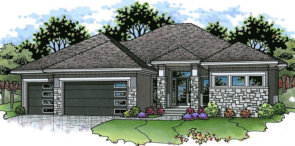 C & M Builders brings their fabulous Windsor Rev. 1.5 sty plan to Johnson Counties newest maintenance provided community of Prairie Canyon. Conveniently located just west of K-7 off of College Blvd., this model home currently not for sale features a wide & open entry that looks into a spectacular Great rm./Kitchen/Dining combo that include a corner FP, large island, huge walk-in pantry & mud room! Luxurious primary suite features a custom walk-in shower & huge walk-in closet. Main floor also includes a 2nd bedroom or Den. Finished walkout LL features a walk up wet bar, very spacious family, entertainment & recreation space, 2 generous bedrooms & a full bath. First floor covered deck w/FP and LL covered patio.