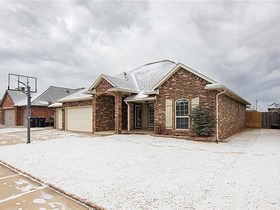You don't want to miss on this gorgeous 4 bedroom 2.5 bath home! Eye-catching features include solid surfaces in living areas, built-in wine rack, & granite throughout. Be cooking in your upgraded kitchen- featuring stainless steel appliances, travertine backsplash, a HUGE walk-in pantry, granite countertops, and generous cabinetry- while looking out over the large living room; welcoming master retreat includes a lovely electric fireplace, walk-in shower, garden tub, spacious walk around closet, and double vanities; guest rooms include a Jack-n-Jill bath. Convenient 3 car garage and storage shed out back. Great location near I-40 & the Turnpike for easy access to the metro; nestled in the sought after Canterbury Addition near highly rated Mustang schools.