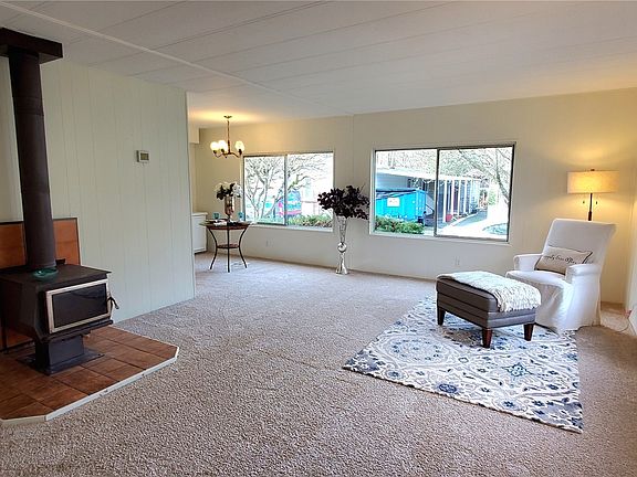 55+ Park. The Pointe at Lockwood Village. 2 bedrooms, 1 & 3/4 baths double wide home. Features new carpet, freshly painted. New furnance installed Nov 2023. Cozy wood burning stove. Both bathrooms remodeled. Dining room w/built in cabinets. Updated kitchen w/new cabinet door fronts. Full size washer & dryer. Roof less than 10 years old. Large covered deck. Front porch & back porch have been rebuilt. Storage shed. Backyard garden space with mature landscaping. Newly remodeled clubhouse w/outdoor BBQ area. RV parking and dog park. Bothell, Kenmore central location. Not far from freeways, groceries, restaurants etc.