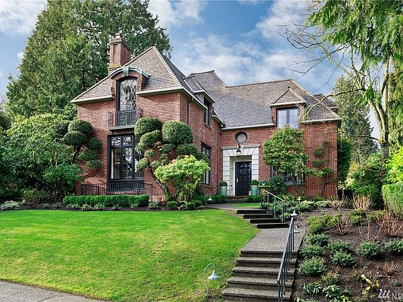 Stately 2-story traditional exemplifying refined elegance inside and out. Red brick walls, shake roof and leaded glass windows. Built in 1928, extensively renovated with original character meticulously preserved. Dark hardwood floors, high ceilings and fine millwork. Light-filled living room with fireplace dining room with access to lovely terrace and backyard exquisite pine-paneled library fabulous marble kitchen 4 bedrooms 3+ baths finished lower level beautifully landscaped grounds.