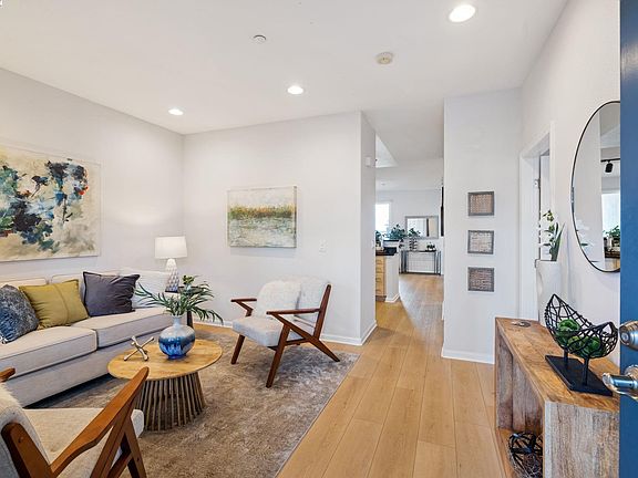 Perched on the top floor with Bay Area views, this 2-bedroom, 2-bath condominium combines modern style with everyday convenience. The inviting formal living area is enhanced by recessed lighting and updated wood floors, creating a warm and welcoming atmosphere. The kitchen features functional layout with a pantry and flows seamlessly into a dedicated dining area and out to a private balcony-your front-row seat to colorful sunsets and sparkling city lights. The primary suite offers a spacious retreat with its own walk-in closet and a well-appointed en-suite bathroom with a vanity and a separate water closet featuring a bidet toilet seat. A second bedroom with a walk-in closet and dedicated vanity enjoys direct access to the full hall bath, making it ideal for guests or a home office. For added convenience, the home includes a laundry closet with a side-by-side washer and dryer, a utility closet for extra storage, and two dedicated parking spaces. Residents also enjoy access to community amenities, including a gym and hot tub-perfect for unwinding or recharging after the day.