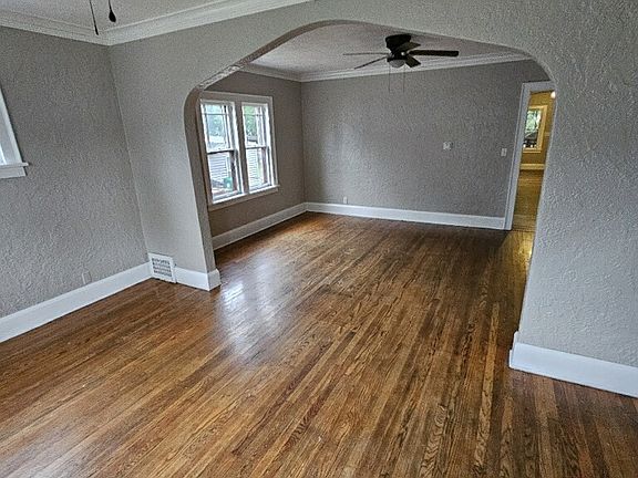Large backyardUpdated kitchenQuartz countertopsDining roomStainless steel appliancesCeiling fansNew and refinished floors