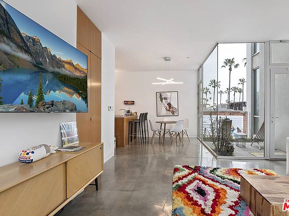 Rarely available LIVE/WORK in the best part of Abbot Kinney! Experience a truly walkable lifestyle in this architectural mixed-use building. Located just blocks from the beach on Abbot Kinney Blvd with its vibrant shopping and dining scene, this tasteful, minimalist apartment gets tons of natural light from large windows offering iconic L.A. views of palm trees. Situated one floor above a vibrant streetscape and accessed via a private garden courtyard, the lower level consists of an open living/dining and kitchen area, powder room and terrace. Upstairs is a bedroom, the primary bath and a study that can also function as a second bedroom. High-end features include polished concrete and Ipe wood floors, teak Euro-style cabinetry, pocket doors, Subzero and Bosch appliances, Miele washer-dryer and a garden with native plants. Unit come with two secured parking spots. s x s