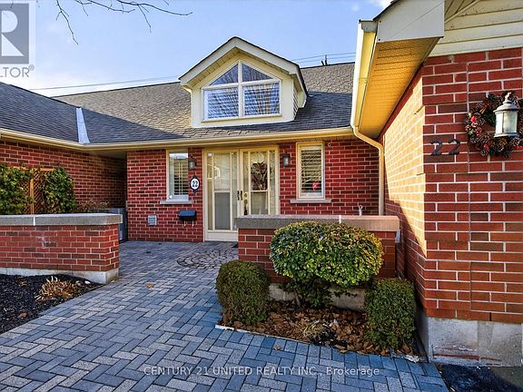 Executive level entry, 1,460 sq ft end unit condo located in sought after Riverpark Village. Backing onto the lush greenery of the Rotary Trail, this exclusive enclave is minutes from Peterborough Golf & Country Club, Trent U Athletics Centre, downtown and all amenities. Spacious main floor features hardwood floors, bright sunroom, gas fireplace, open concept living room/dining room, classic white kitchen with quartz counters, abundant storage and a cozy family room. Walk-out to a new enhanced west facing deck with awning, composite decking and new metal railing. Large primary bedroom with ensuite, additional 4 piece bath, main floor laundry, easy access to the double car garage, large foyer, new front walkway and courtyard - no stairs. The lower level offers a family room, office with custom built bookshelves, 2 sided gas fireplace, spacious bedroom, 3 piece bath, convenient large pantry/kitchenette. You will be impressed! A pre-inspected home. (id:41440)