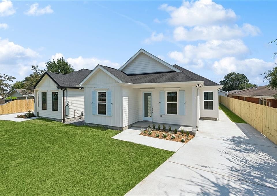 Welcome home to 1121 Avenue A in Marrero, LA. Newly built 3 bed, 2 bath, 1,653-sq-ft home featuring a FORTIFIED™ Roof that may help lower insurance costs, just minutes from West Jefferson Medical Center along with grocery stores, restaurants, and nearby schools, offering a bright open plan with tall ceilings, LED recessed lighting, and wide-plank LVP floors; a chef-style kitchen with a large island, pendant lighting, quartz countertops, and stainless steel appliances; a retreat-like primary suite with a huge tiled walk-in shower, freestanding soaking tub, double vanity, and walk-in closet; plus outdoor perks including a welcoming front porch, extended driveway, and privacy-fenced yard—Don’t wait, call today to schedule your showing.