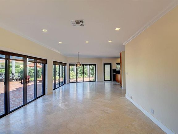 Beautiful marble flooring flows through an open living space that extends to the patio, creating the perfect indoor-outdoor lifestyle.