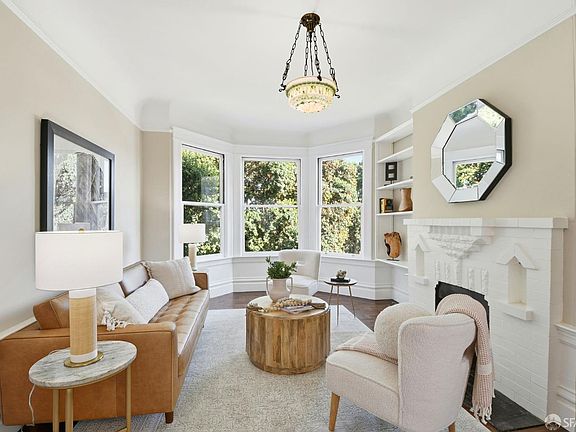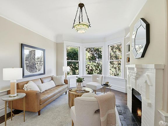 Situated in the highly desirable Anza Vista neighborhood, this is an amazing opportunity to own a spacious full-floor, upper unit, 2- or 3-bedroom condo in a charming Edwardian 2-unit building. Featuring high ceilings, elegant Edwardian details including crown molding and ceiling medallions, and abundant character throughout. The flexible floor plan allows for either 2 bedrooms with a formal dining room or 3 bedrooms with a large eat-in kitchen. The generously sized living room boasts an original decorative fireplace, while the bedrooms offer ample space and comfort. One full bath and recently refinished hardwood floors throughout add to the home's appeal. A private side-by-side washer/dryer is conveniently located in a separate closet, and one-car independent garage parking is included, entry from the rear on St. Josephs Street. Large storage room down. Solar panels included for this unit reducing utility bills considerably. Perfectly located minutes from Divisadero and Fillmore Streets, with shops, restaurants, and conveniences like Trader Joe's and Target nearby. Just a few blocks to Kaiser Permanente and close to everything this vibrant neighborhood has to offer!