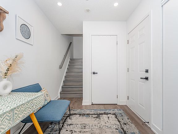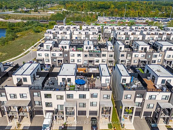 *View Tour* Welcome to Station West a modern 3-storey townhome, perfectly located just minutes from the lake, parks, schools, and Aldershot GO Station. This upgraded 2 bedroom, 3 washroom 1,400+ sq. ft. of stylish, low-maintenance living space in one of Burlington's most desirable and commuter-friendly locations. This home has everything you're looking for, a rare hardwood oak staircase with black iron spindles from top to bottom. The potlights and upgraded light fixtures throughout bring a modern touch. Wide plank laminate flooring flows throughout the home, where large windows and a walkout to your private balcony flood the space with natural light. The second floor features a beautifully designed open-concept layout, with spacious living and dining area with a feature wall design that's perfect for entertaining and easy to furnish to suit your style. Step out to an additional balcony from the dining area for even more outdoor space. The kitchen has quartz countertops, a designer backsplash, upgraded black stainless steel appliances, and a large island with breakfast bar, built-in microwave, and built-in hood range. A upgraded 2-piece powder room is also located on this level. The third floor includes bright bedrooms, a full 3-piece bathroom, and bedroom-level laundry for added convenience. The top level boasts an oversized private rooftop terrace with stunning views of Burlington's.