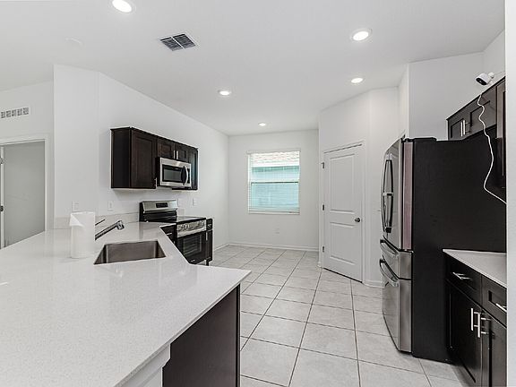 Separate from the guest suite, the main home offers 3 bedrooms plus an office that could be used as a 4th bedroom, playroom or workout room. The modern kitchen is complete with ample counter space and storage boasting stainless steel appliances, eating space within the kitchen and easy access to the laundry room that's equipped with a washer and dryer that won't be warranted with the lease but just installed when the home was built last year!