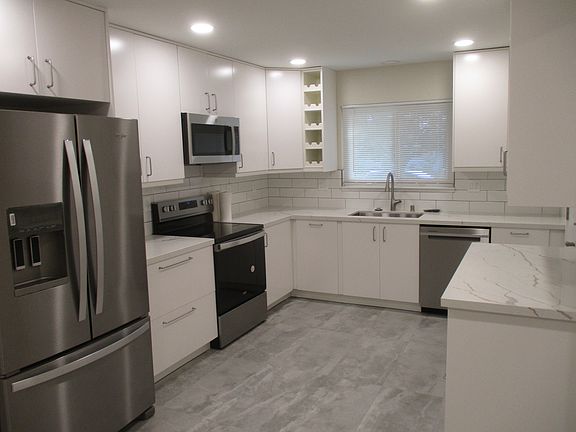 Quartz countersStainless steel appliancesSliding glass doorsNew double pane windows