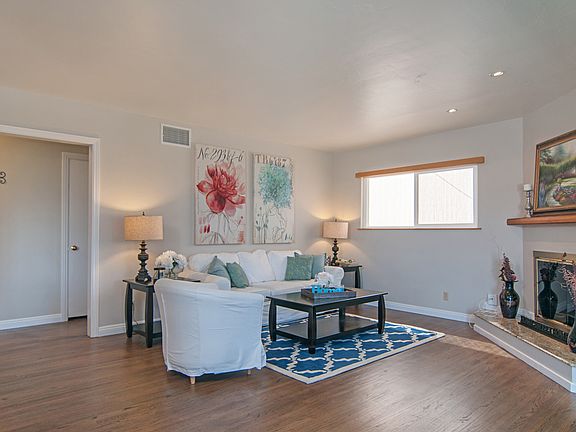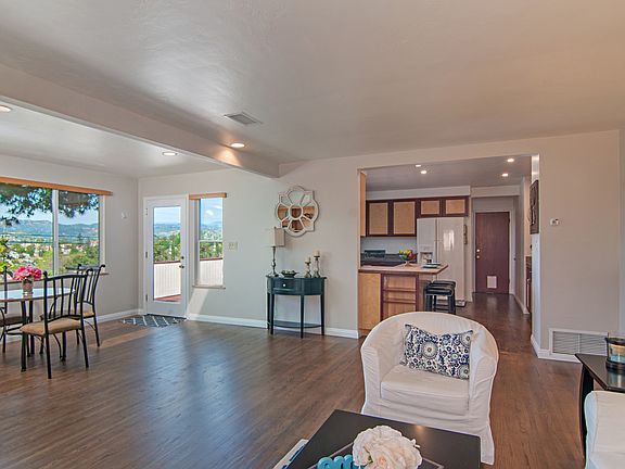 Seller will entertain offers between $425,000 and $465,000. Beautiful gem with lovely views of city and mountains. Enjoy the view and cool breeze on the deck. Living room includes fireplace, large custom built in book shelf and dark hardwood floors throughout the entire home. Large window at the front of the house to embrace the views from the living room, dining room or kitchen. Plenty of cabinet space in the kitchen with an eat in butcher-block counter top. Master bedroom has a cedar lined closet with built in shelving and access to the patio with a fireplace/pizza oven. Many upgrades throughout the house. This is a must see and will not last! Please contact Cay at 858-231-2451 if you have any questions.