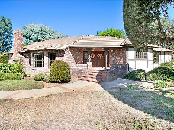 New Price - Custom Built Home located in an exclusive area of San Dimas close to Walnut Creek - This home is a one story English Tudor with expansive yard of almost 3/4 of an acre - Gardeners dream lot with 25 fruit trees which many are fully mature - Prime soil for planting whatever your heart desires, mended soil every year for his seasonal harvesting of vegetables and fruits - The home entrance greets you with double doors and hardwood flooring - 3 steps down to open living room/family room with rustic wood vaulted ceilings and brick fireplace - Dining area has a drop down rustic wood ceiling which adds charm - Kitchen is very large with nice sized island and separate eating area - Dining room has French doors that lead out back to a patio and grass area for entertaining - Large pantry room with vegetable sink and lots of cabinets and shelving - 3 nice sized bedrooms, which one is located away from the other 2 bedrooms which is perfect for guests due to its proximity to the kitchen and bathroom with a back door close by. Master bedroom also has a fireplace to cozy up to, vaulted ceilings and French doors leading to back yard. Master bathroom has duel vanities and sinks, plus jacuzzi tub and stand alone shower plus a walk-in-closet - There is a nice size laundry room with half bath - Also a separate utility room that which includes a safe and lots of cabinets - Long driveway and lots of room for RV's and or other vehicles - 3 car detached garage - lots of room to add an ADU - Charter Oak Schools - Close to creek, shopping, hospital and freeways