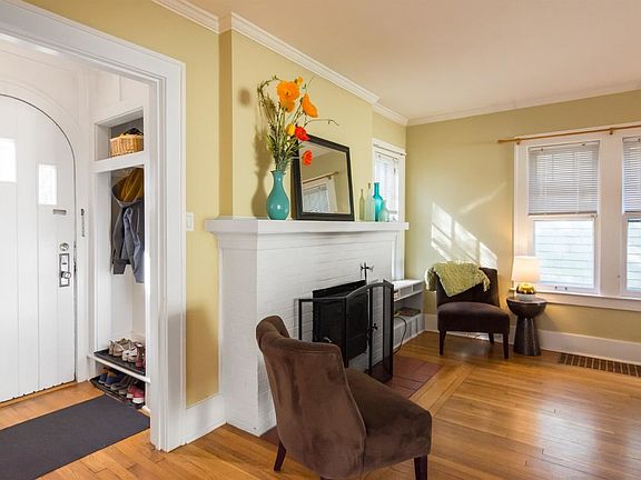 A charming 4 bedroom, 2.5 bath home, perfect for small families, just three blocks from the acclaimed Burns Park Elementary School! Children can walk to the elementary and middle schools without having to cross major streets; parents can easily walk or bike to campus, hospitals and downtown. This house exudes charm, and makes extraordinary use of its square footage. A great opportunity to live in one the most charming, convenient and sought after neighborhoods in Ann Arbor. The all-hardwood first floor has a living room with working fireplace, a dining room, a separate sitting room with 16'' walls and ample built in shelves, plus an open kitchen with new stainless appliances, Corian counters and ample cabinet space. The second floor has three large bedrooms and a full bath. The top floor has been redone as a wonderful master suite with curved cedar ceiling and another full bath providing an extraordinary amount of privacy. Partially finished basement includes half bath along with a finished room that is currently used as a children's playroom, but which could be easily converted into a home office. A small, fenced backyard has a new deck with a pergola that blooms with wisteria every spring and summer. It's perfect for grilling an