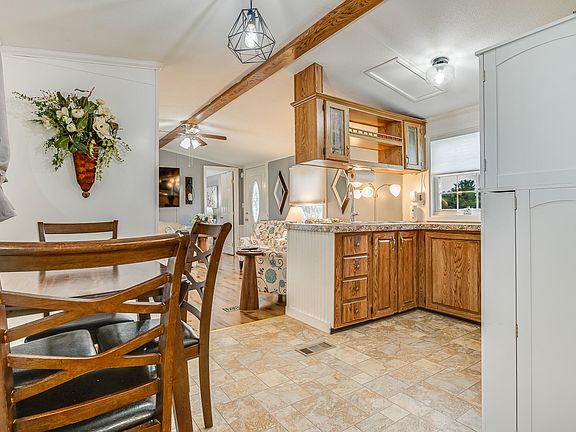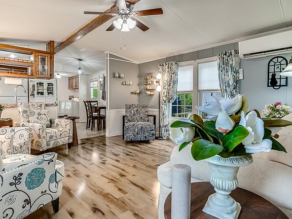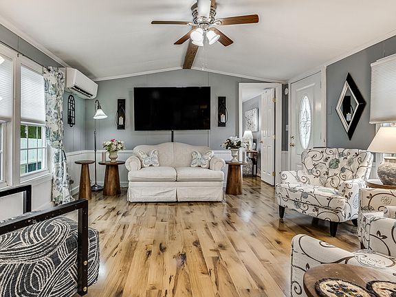 This adorable and lovingly maintained 2-bedroom, 1-bath mobile home is perfect for anyone looking for peaceful, easy living in a beautiful setting. Fully updated and situated on 0.74 landscaped acres, the property features mature perennials, a serene pond with a bubbling fountain, and a one-car garage.