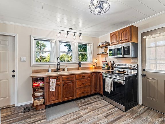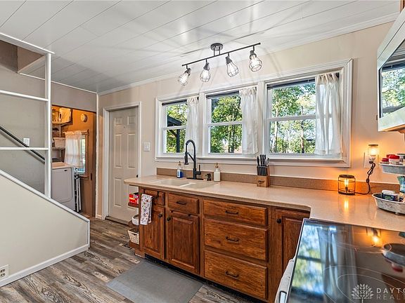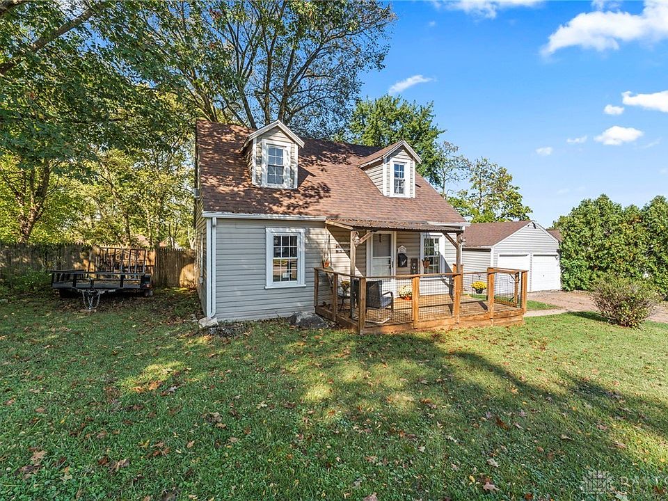 Welcome home to this charming Cape Cod on a double lot, tucked away at the end of a quiet, dead-end street in Fairborn. From the moment you pull up, you’ll notice the custom brick driveway and inviting curb appeal. Step inside to a bright, spacious living room with new LVP flooring (2021) and plenty of natural light. The main level also features a large bedroom (new carpet 2021), full bath, and a kitchen filled with character—complete with oak cabinetry, ample counter space with granite countertops, and window overlooking the backyard. New fridge, stove, and microwave in 2024!