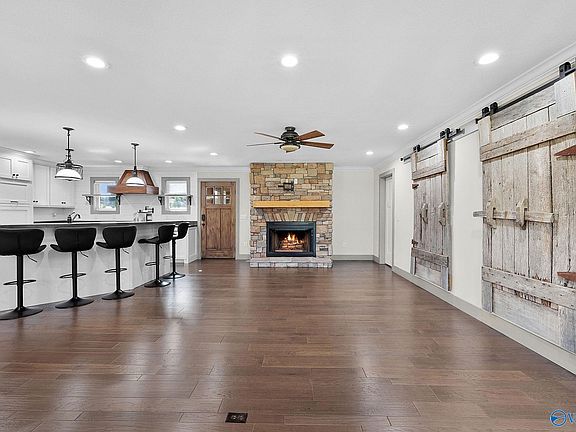 Completely remodeled 3BR/2BA brick home on 25+ fenced and gated acres featuring a detached 2-car carport, large workshop, and spacious barn. The main home showcases granite countertops, updated finishes, and a screened deck with fireplace, perfect for year-round gatherings. Urban Pines offers 4 high-income producing tiny homes with fire pits and grills, generating approx. $80K annually. A stocked pond provides a peaceful escape for fishing or relaxing, while open pasture adds versatility for recreation, livestock, or expansion. With privacy, space, and multiple income streams, this property is a rare find just minutes from Boaz, blending modern comfort, or investment opportunity.