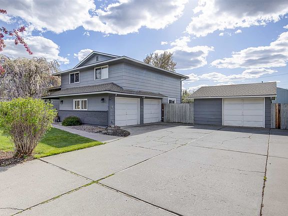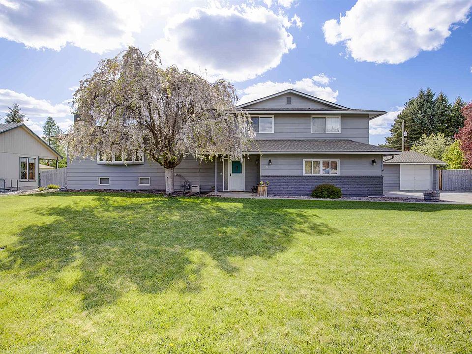 Spacious 4 level Valley home on oversized fenced lot! Double attached garage and single detached garage. RV parking. Large kitchen with bar and dining area and large walk in pantry/laundry room. Covered deck off kitchen. 3 top floor bedrooms including primary bedroom with walk in closet and full bath. Main floor office with slider to side yard. Lower level has family room and two non-egress bedrooms. Quiet street. Central Valley Schools, near Evergreen I-90 interchange, near hospitals, bus and shopping. Roof is 8 years old, hot water heater 3 yrs old, HVAC 6 yrs old. Heat pump one year old. Exterior painted 4 years ago.. Square footage to be verified by buyer.