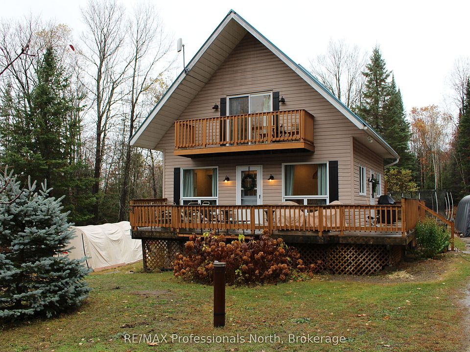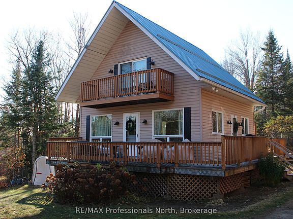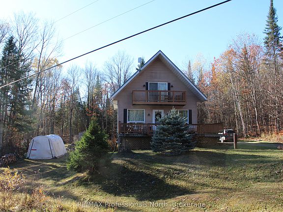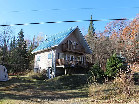 10 minutes from Haliburton on a quiet county road, you'll find this private home with 2+1 bedrooms, 2 bathrooms and just over 1500 or so feet of living space. Entering through the side door to the kitchen is to the right and living/dining area to the left. The galley style kitchen offers ample storage space, easy to maintain countertops and views out over the back yard. Freshly decorated living and dining with new pot lighting with a walkout to the deck across the front, and large windows bringing plenty of light. Bright and spacious 2-piece bathroom with a built in main floor laundry. The stairs by the side door bring you up to the second floor, with 2 bedrooms and a 3-piece bathroom. New vinyl plank flooring and freshly finished closets in both bedrooms. The lower level sits partially above grade and is partially finished. Small rec room with a walkout to the side yard. Bedroom, utility room and storage area. The home was built for easy living and maintenance in mind with vinyl siding, a newer metal roof, drilled well and forced air propane. Sitting on a large private 1.58 acre lot with a spacious cleared back-yard surrounded by trees.