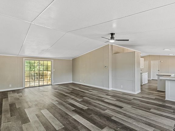 Step into this beautifully remodeled 4-bed, 2-bath manufactured home that blends comfort, style, and thoughtful updates throughout. The open-concept living area features fresh flooring, modern lighting, and a bright, welcoming kitchen with plenty of counter space and storage. The spacious primary suite is a true retreat—featuring two walk-in closets, a comfortable sitting area ideal for a reading nook or home office, and private access to the back porch for quiet mornings or evening relaxation. Three additional bedrooms offer versatile space for guests, kids, or hobbies, and both bathrooms have been tastefully refreshed. Outside, you’ll love the covered porch overlooking the yard and the extra storage above the garage, perfect for seasonal items, tools, or workspace needs. Move-in ready and recently remodeled, this home delivers incredible value with room to live, relax, and grow.